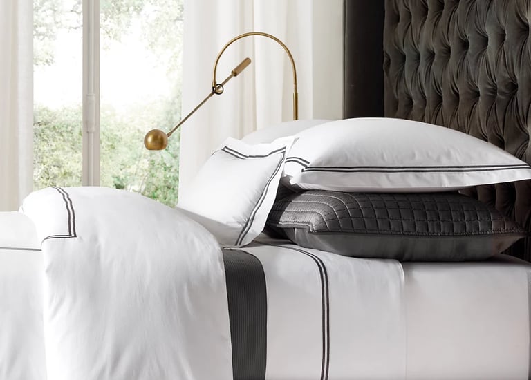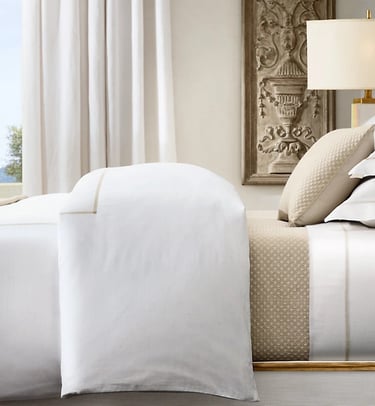 We offer a breathtaking selection of linen finishes, which includes the timeless classic finish, the sophisticated Oxford finish, or an Oxford embellished with a single, double, or triple row of satin stitching embroidery in ten different colours of satin cotton. Whether you're seeking standard sizes or custom dimensions and finishes for your projects, you will be enveloped in a touch of elegance and sophistication.